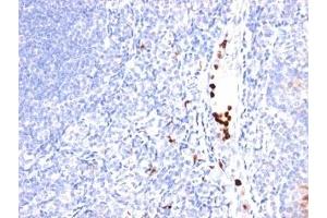 - Recognizes a myeloid associated differentiation antigen in the cytoplasm of mature granulocytes. It shows no reactivity with any other cell type in human tissues. Markers of myeloid cells are useful in the identification of different levels of cellular differentiation. It reacts with early precursor and mature forms of human and monkey myeloid cells. This mAb is useful for the detection of myeloid leukemias and granulocytic sarcomas. It can be used as a marker of granulocytes in normal tissues or inflammatory processes.