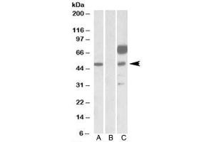 - Optimal dilution of the ANGPT1 antibody should be determined by the researcher.\. Western blot: 1-3 μg/mL,ELISA (peptide) LOD: 1:32000