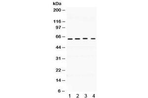 Optimal dilution of the BAG3 antibody should be determined by the researcher.\. Western blot: 0.1-0.5 μg/mL,IHC (Paraffin): 0.5-1 μg/mL