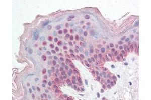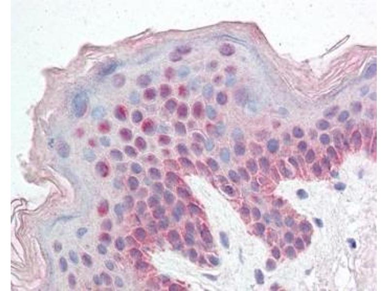 2. Reported to show bands at 170 + 90 kDa in HeLa lysate.\. Western blot: 1-3 μg/mL (2),IHC (FFPE): 5 μg/mL,ELISA (peptide) LOD: 1:32000 -