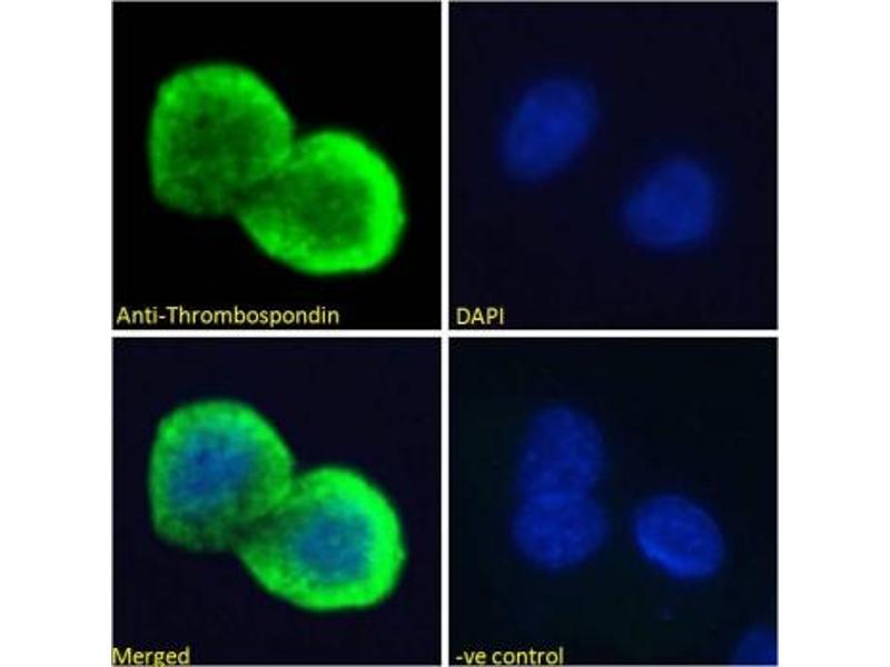 The Goat Polyclonal anti-Thrombospondin 1 antibody is suitable to detect Thrombospondin 1 in samples from Human. It has been validated for WB, ELISA, ICC, IF and FACS.
