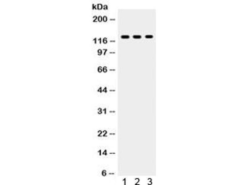 Optimal dilution of the TLR7 antibody should be determined by the researcher.\. Western blot: 0.1-0.5 μg/mL,Immunocytochemistry: 0.5-1 μg/mL,IHC (Frozen): 0.5-1 μg/mL,IHC (Paraffin): 0.5-1 μg/mL,FACS: 1-3 μg/10^6 cells