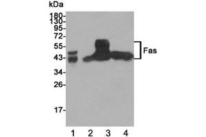 The Mouse Monoclonal anti-FAS antibody has been validated for WB. It is suitable to detect FAS in samples from Human and Rat.