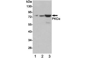 - The stated application concentrations are suggested starting points. Titration of the PKC alpha antibody may be required due to differences in protocols and secondary/substrate sensitivity.\. Western blot: 1:1000