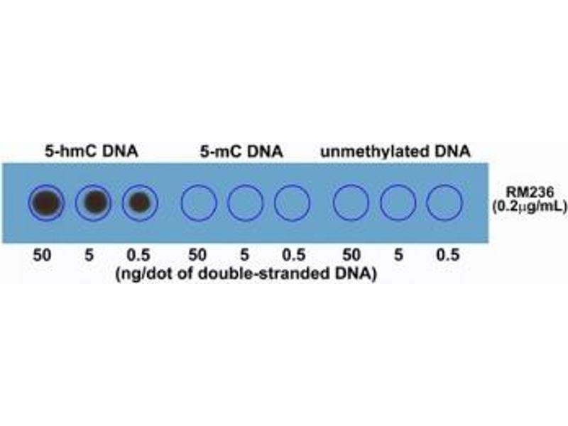 1. A pH 6 Citrate buffer or pH 9 Tris/EDTA buffer HIER step is recommended for testing of FFPE tissue sections.\. Dot Blot: 0.2-1 μg/mL,ELISA: 0.1-1 μg/mL,Immunohistochemistry: 0.1-1 μg/mL (1),Immunocytochemistry: 0.5-2 μg/mL,hMeDIP: 0.2 μg/mL- 2 μg/mL