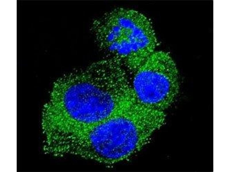 A portion of amino acids 333-362 from the human protein was used as the immunogen for this anti-APP antibody.