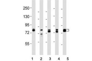 Titration of the DNM1L antibody may be required due to differences in protocols and secondary/substrate sensitivity.\. Western blot: 1:8000