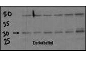 Titration of the DSCR1 antibody may be required due to differences in protocols and secondary/substrate sensitivity.\. Western blot: 1:1000