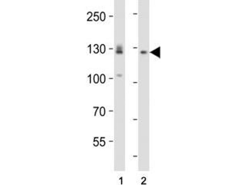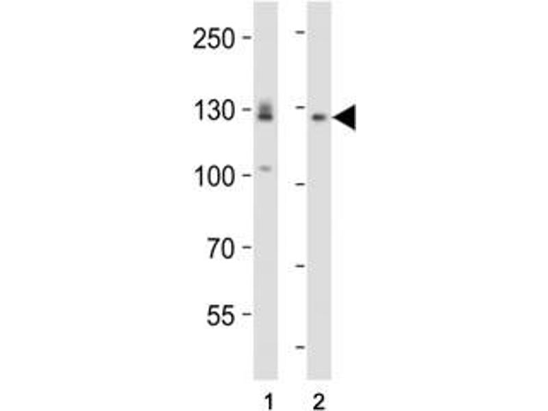 Titration of the EPHA2 antibody may be required due to differences in protocols and secondary/substrate sensitivity.\. Western blot: 1:1000