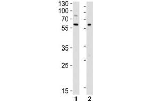 Titration of the LYN antibody may be required due to differences in protocols and secondary/substrate sensitivity.\. Western blot: 1:1000