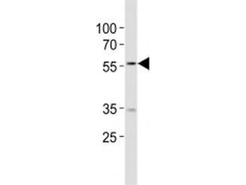 A portion of amino acids 400-426 from the human protein was used as the immunogen for this NAMPT antibody.