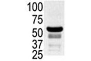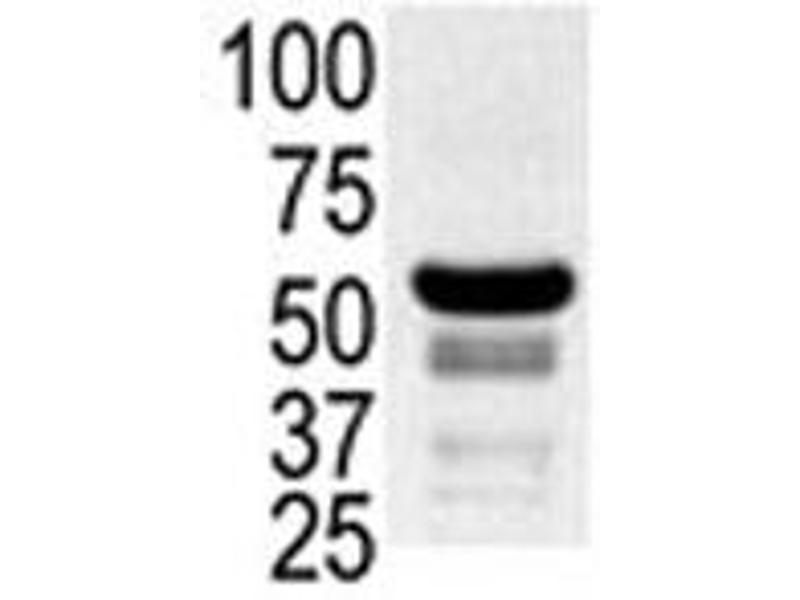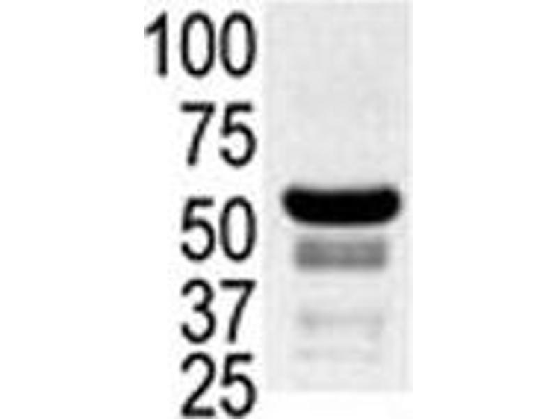 PAK2, a member of the STE20 subfamily of Ser/Thr protein kinases, acts on a variety of targets. It phosphorylates ribosomal protein S6, histone H4 and myelin basic protein. PAK2 interacts tightly with GTP-bound but not GDP-bound CDC42/p21 and RAC1. Expression is ubiquitous, with higher levels seen in skeletal muscle, ovary, thymus and spleen. PAK2 is autophosphorylated when activated by CDC42/p21. The protein structure contains 1 CRIB domain.