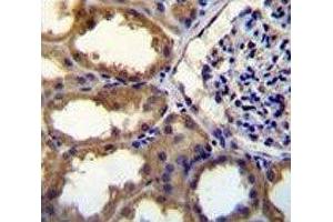 Titration of the PDGFC antibody may be required due to differences in protocols and secondary/substrate sensitivity.\. Western blot: 1:1000,IHC (Paraffin): 1:10-1:50