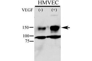 Titration of the phospho-KDR antibody may be required due to differences in protocols and secondary/substrate sensitivity.\. Western blot: 1:1000,IHC (Paraffin): 1:50-1:100