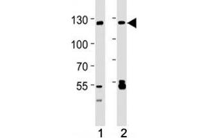 Titration of the SIRT-1 antibody may be required due to differences in protocols and secondary/substrate sensitivity.\. Western blot: 1:1000