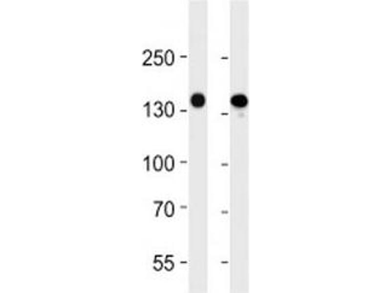 Titration of the VEGFR3 antibody may be required due to differences in protocols and secondary/substrate sensitivity.\. Flow Cytometry: 1:25,IHC (Paraffin): 1:25,Western blot: 1:2000