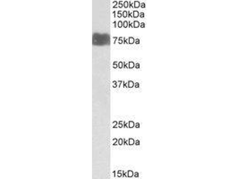 Peptide ELISA: Limit Dilution: 1/2000. Western blot: 1-3 μg/mL. Approx 75 kDa band observed in Human Kidney, and Heart lysates(calculated MW of 88.5 kDa according to NP_004728.1).