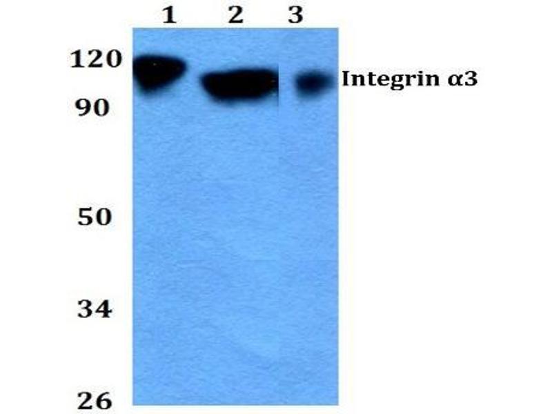 Integrins are heterodimeric integral membrane proteins composed of an alpha chain and a beta chain. Alpha chain 3 undergoes post-translational cleavage in the extracellular domain to yield disulfide-linked light and heavy chains that join with beta 1 to form an integrin that interacts with many extracellular-matrix proteins. The alpha 3 beta 1 integrin is known variously as: very late (activation) antigen 3 (VLA3), very common antigen 2 (VCA2), extracellular matrix receptor 1 (ECMR1), and galactoprotein b3 (GAPB3).Synonyms: CD49 antigen-like family member C, FRP-2, GAPB3, Galactoprotein B3, ITGA-3, ITGAG3, Integrin alpha-3, MSK18, VLA-3 alpha chain, VLA3