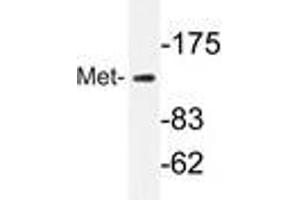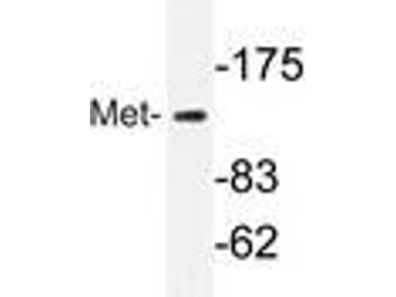The c-Met oncogene was originally isolated from a chemical carcinogentreated human osteogenic sarcoma cell line by transfection analysis in NIH/ 3T3 cells. The Met proto-oncogene product was identified as a transmembrane receptor-like protein with tyrosine kinase activity that is expressed in many tissues. A high proportion of spontaneous NIH/3T3 transformants overexpress c-Met and by transfection analysis the c-Met proto-oncogene has been shown to exhibit transforming activity. Tyrosine phosphorylation of apparently normal Met protein has also been observed in certain human gastric carcinoma cell lines. The c-Met gene product has been identified as the cell surface receptor for hepatocyte growth factor, a plasminogenlike protein thought to be humoral mediator of liver regeneration.Synonyms: HGF/SF receptor, Hepatocyte growth factor receptor, MET, Met proto-oncogene tyrosine kinase, Scatter factor receptor, c-Met