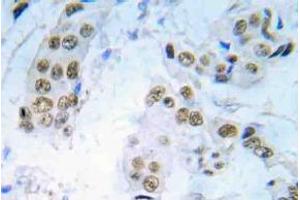 The phosphatidylinositol kinase (PIK) family members fall into two distinct subgroups. The first subgroup contains proteins such as the PI 3- and PI 4- kinases and the second group comprises the PIK-related kinases. The PIKrelated kinases include Atm, DNA-PKCS and FRAP. These proteins have in common a region of homology at their carboxy-termini that is not present in the PI 3- and PI 4-kinases. The Atm gene is mutated in the autosomal recessive disorder ataxia telangiectasia (AT) that is characterized by cerebellar degeneration (ataxia) and the appearance of dilated blood vessels (telangiectases) in the conjunctivae of the eyes. AT cells are hypersensitive to ionizing radiation, impaired in mediating the inhibition of DNA synthesis and they display delays in p53 induction. DNA-PK is a heterotrimeric DNA binding enzyme that is composed of a large subunit, DNA-PKCS, and two smaller subunits collectively known as Ku. The loss of DNA-PK leads to defects in DSB repair and V(D)J recombination. FRAP can autophosphorylate on Serine and bind to Rapamycin/FKBP. FRAP is also an upstream regulator of S6 kinase and has been implicated in the regulation of p27 and p21 expression.Synonyms: DNA-dependent protein kinase catalytic subunit, DNPK1, HYRC, HYRC1, p460