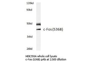 - This antibody detects endogenous levels of c-Fos protein. (region surrounding Ser368)