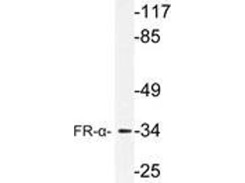 Folate is an essential vitamin that must be obtained from food intake through intestinal absorption in mammals. Folate and reduced folic acid derivatives bind to the folate receptor (FR) family, which mediates the endocytosis of 5-methyltetrahydrofolate into the cell. The folate receptors consist of five members, α, β, γ, γ' (which is produced by alternative splicing) and δ. β-FR is attached to the membrane by a GPI anchor and is expressed in malignant tissues of epithelial and nonepithelial origin. γ-FR is expressed in tissues of hematopoietic origin, such as spleen, thymus and bone marrow. The expression pattern of δ-FR is elusive, which suggests that it is highly restricted both spatially and temporally. The α isoform of the folate receptor is used as a highly selective tumor marker and may be targeted for the delivery of therapeutic compounds to tumor cells by coupling to derivatives of folic acid.Synonyms: Adult folate-binding protein, FOLR, FOLR1, FR-alpha, Folate receptor 1, KB cells FBP, MOv18, Ovarian tumor-associated antigen MOv18