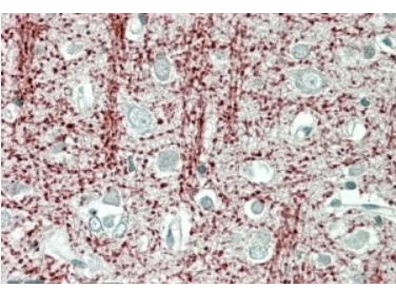 Peptide ELISA: Limit Dilution: 1/32000. Western blot: 0.001-0.01 μg/mL. Detects a band of approx. 26 kDa in Human Brain (Cerebellum),Mouse and Rat Brain lysates. An additional band of unknown identity was also consistentlyobserved at 16 kDa. This band was successfully blocked by incubation with the immunizingpeptide. Other applications not tested. Optimal dilutions are dependent on conditions and should be determined by the user.