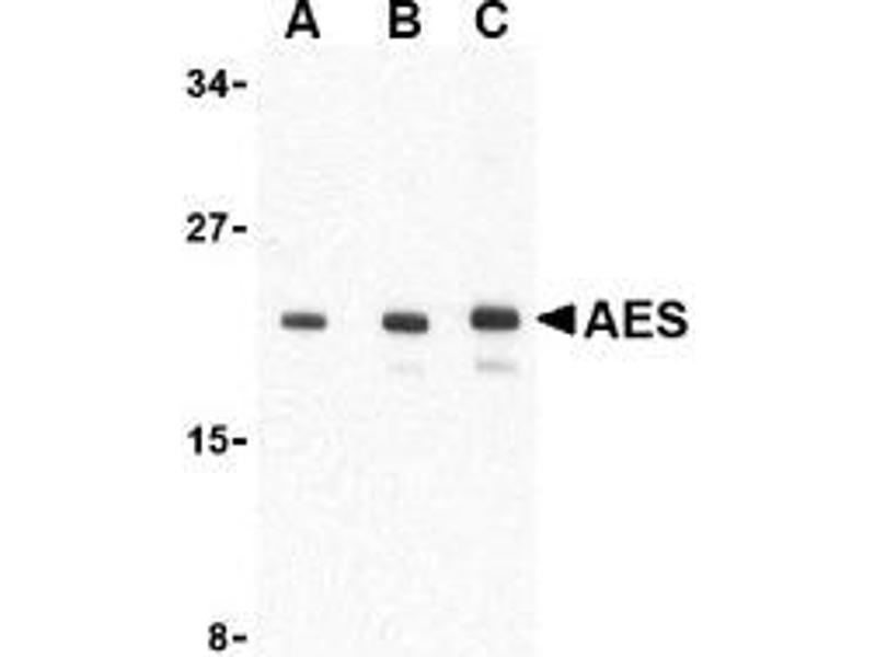 - AES antibody was raised against a 16 amino acid peptide from near the carboxy terminus of human AES.