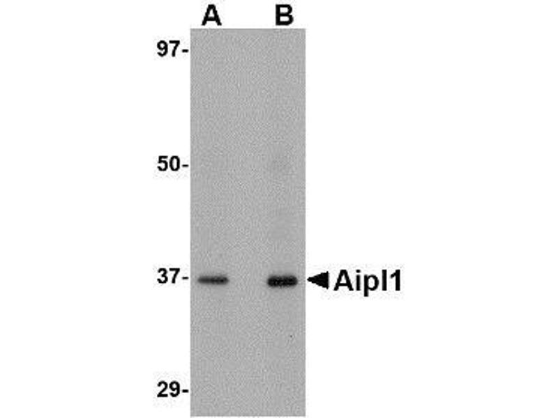 Aipl1 was initially identified as a protein implicated in Leber congenital amaurosis (LCA), an autosomal recessive disorder thought to be caused by the abnormal development of photoreceptors. Aipl1 is a tetratricopeptide repeat protein that is highly homologous to ARA9, a protein involved in the HSP90-mediated nuclear translocation and transactivation of the aryl hydrocarbon receptor. Aipl1 has also been found to function as part of a chaperone heterocomplex, interacting with Hsp90 and Hsp70. Aipl1 also associates with the cell cycle regulator NUB1. It is thought that Aipl1 cooperates with Hsp70 but not Hsp90 to suppress the formation of NUB1 inclusions, and these interactions are necessary in the normal photoreceptor maturation, as mutations that lead to LCA also compromise the interactions with the Hsp chaperones. At least three isoforms of Aipl1 are known to exist.Synonyms: Aryl-hydrocarbon-interacting protein-like 1