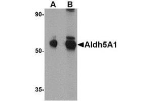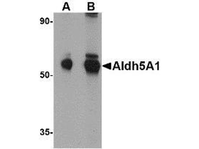 ELISA. Western Blot: Aldh5A1 antibody can be used for detection of Aldh5A1 at 1 - 2 μg/mL. Other applications not tested. Optimal dilutions are dependent on conditions and should be determined by the user.