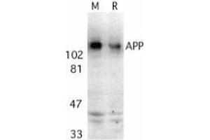 ELISA. Western Blot: APP antibody can be used for detection of APP and the C99 fragment at 1 - 2 μg/mL. Immunohistochemistry. Other applications not tested. Optimal dilutions are dependent on conditions and should be determined by the user.