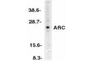ELISA. Western Blot: ARC antibody can be used for detection of ARC at 1/500 dilution. Whole celllysate from HeLa cells can be used as positive control and an approximately 25 kDa bandcan be detected. Other applications not tested. Optimal dilutions are dependent on conditions and should be determined by the user.