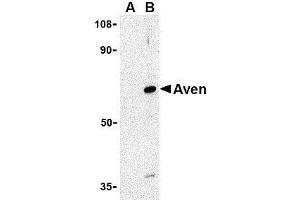 ELISA. Western Blot: Aven antibody can be used for detection of Aven at 0.5 to 1 μg/mL. Immunohistochemistry. Other applications not tested. Optimal dilutions are dependent on conditions and should be determined by the user.