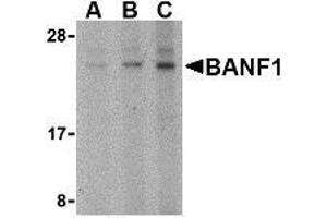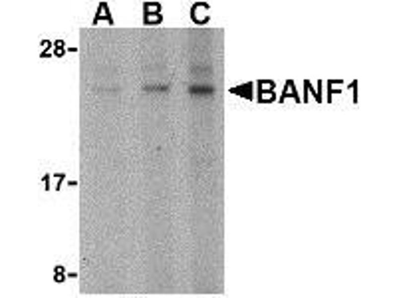 ELISA. Western Blot: BANF1 antibody can be used for detection of BANF1 at 0.5 - 1 μg/mL. Immunofluorescence. Other applications not tested. Optimal dilutions are dependent on conditions and should be determined by the user.