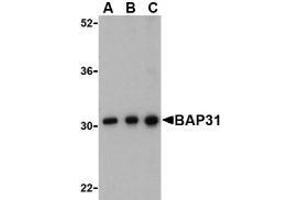 ELISA. Western Blot. BAP31 antibody can be used for the detection of BAP31 at 0.5 - 1 μg/mL. Immunohistochemistry. Other applications not tested. Optimal dilutions are dependent on conditions and should be determined by the user.