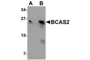 - BCAS2 antibody was raised against a 14 amino acid peptide near the carboxy terminus of human BCAS2.