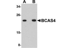 ELISA. Western Blot: BCAS4 antibody can be used for detection of BCAS4 at 1 - 2 μg/mL. Immunohistochemistry. Other applications not tested. Optimal dilutions are dependent on conditions and should be determined by the user.