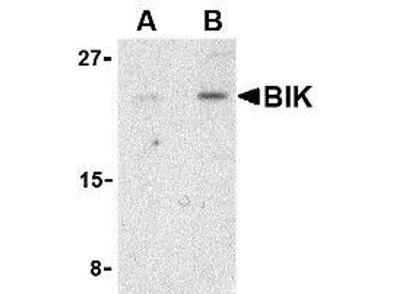 ELISA. Western Blot: BIK antibody can be used for the detection of BIK ot at 1 - 2 μg/mL. Immunocytochemistry. Other applications not tested. Optimal dilutions are dependent on conditions and should be determined by the user.