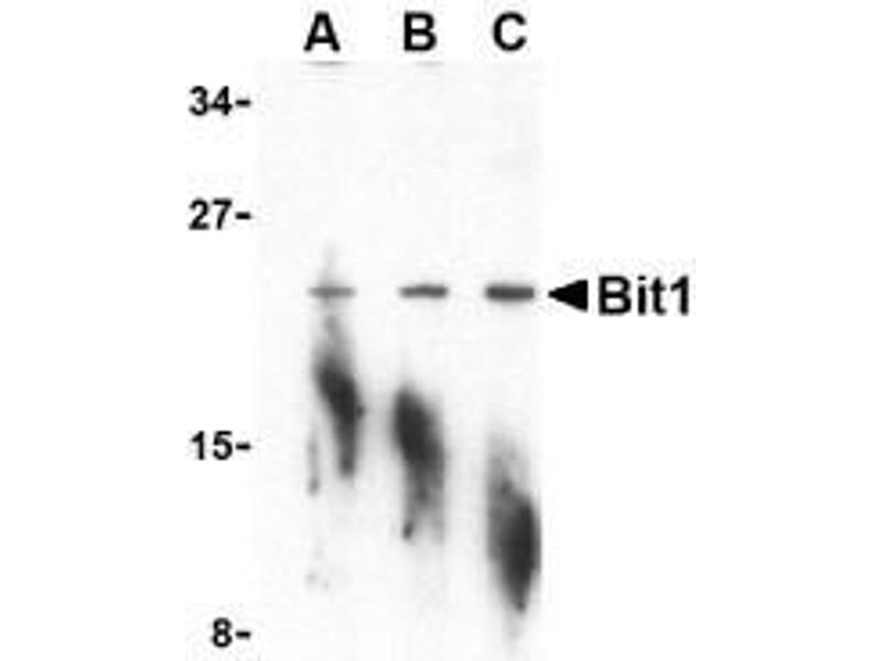 ELISA. Western Blot: Bit1 antibody can be used for the detection of Bit1 at 1 - 2 μg/mL. Immunocytochemistry. Other applications not tested. Optimal dilutions are dependent on conditions and should be determined by the user.