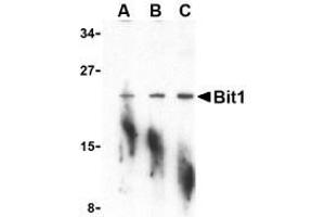 Bit1 antibody was raised against a 15 amino acid peptide from near the amino-terminus of human Bit1.