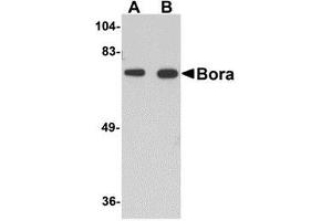 ELISA. Western Blot: Bora antibody can be used for detection of Bora at 1-2 μg/mL. Immunohistochemistry. Other applications not tested. Optimal dilutions are dependent on conditions and should be determined by the user.