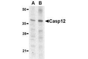 ELISA. Western Blot: Caspase-12 (small) antibody can be used for the detection of both thepropeptide and cleaved forms of caspase-12 at 0.5 to 2 μg/mL. Immunohistochemistry. Other applications not tested. Optimal dilutions are dependent on conditions and should be determined by the user.