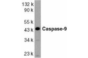 ELISA. Western Blot: Caspase-9 antibody can be used for detection of caspase-9 at 1/1000 to1/2000 dilution. A 46 kDa band should be detected. Immunocytochemistry. Other applications not tested. Optimal dilutions are dependent on conditions and should be determined by the user.