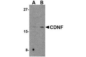 ELISA. Western Blot: CDNF antibody can be used for detection of CDNF at 2 - 4 μg/mL. Immunohistochemistry. Other applications not tested. Optimal dilutions are dependent on conditions and should be determined by the user.