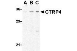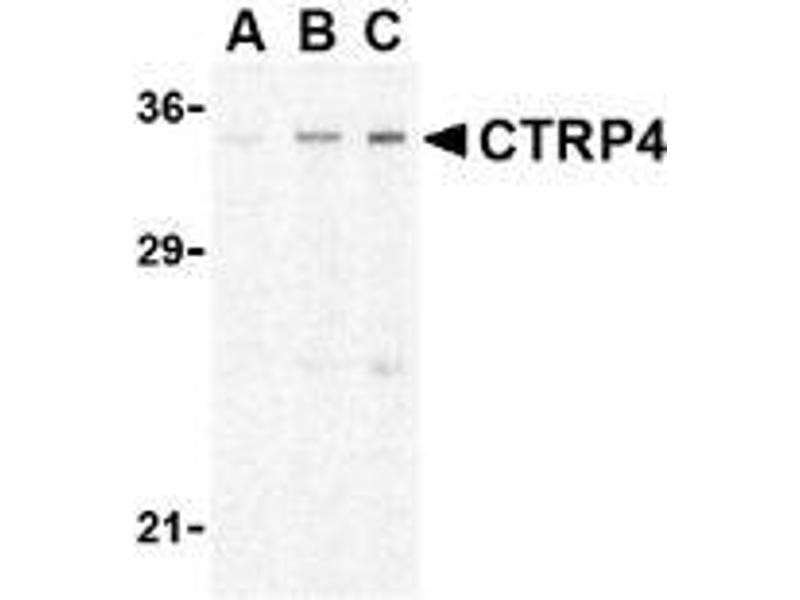 CTRP4 antibody was raised against a 16 amino acid peptide from near the center of human CTRP4.