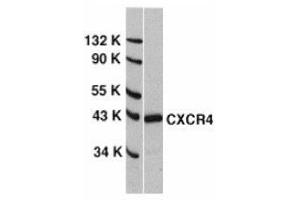 Human immunodeficiency virus (HIV) and related viruses require coreceptors, in addition to CD4, to infect target cells. Some G protein-coupled receptors including CCR5, CXCR4, CCR3, CCR2b and CCR8 in the chemokine receptor family, and four new human molecules GPR15, STRL33, GPR1 and V28 were recently identified as HIV coreceptors. Among them, CXCR4 (fusin, LESTR or HUMSTR) is a principal coreceptor for T-cell tropic strains of HIV-1 fusion and entry of human white blood cells. CXCR4 is also required for the infection by dual-tropic strains of HIV-1 and mediates CD-4 independent infection by HIV-2. The a-chemokine SDF-1 is the ligand for CXCR4 and prevents infection by T-tropic HIV-1. CXCR4 associates with the surface CD4-gp120 complex before HIV enters target cells. CXCR4 messenger RNA levels correlated with HIV-1 permissiveness in diverse human cell types. Antibodies to CXCR4 block HIV-1 and HIV-2 fusion and infection of human target cells. The amino-terminal domain and the second extracellular loop of CXCR4 serve as HIV binding sites.Synonyms: C-X-C chemokine receptor type 4, CXC-R4, CXCR-4, FB22, Fusin, HM89, LCR1, LESTR, Leukocyte-derived seven transmembrane domain receptor, NPYRL, SDF1 receptor, Stromal cell-derived factor 1 receptor