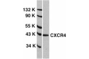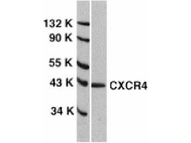 Human immunodeficiency virus (HIV) and related viruses require coreceptors, in addition to CD4, to infect target cells. Some G protein-coupled receptors including CCR5, CXCR4, CCR3, CCR2b and CCR8 in the chemokine receptor family, and four new human molecules GPR15, STRL33, GPR1 and V28 were recently identified as HIV coreceptors. Among them, CXCR4 (fusin, LESTR or HUMSTR) is a principal coreceptor for T-cell tropic strains of HIV-1 fusion and entry of human white blood cells. CXCR4 is also required for the infection by dual-tropic strains of HIV-1 and mediates CD-4 independent infection by HIV-2. The a-chemokine SDF-1 is the ligand for CXCR4 and prevents infection by T-tropic HIV-1. CXCR4 associates with the surface CD4-gp120 complex before HIV enters target cells. CXCR4 messenger RNA levels correlated with HIV-1 permissiveness in diverse human cell types. Antibodies to CXCR4 block HIV-1 and HIV-2 fusion and infection of human target cells. The amino-terminal domain and the second extracellular loop of CXCR4 serve as HIV biding sites.Synonyms: C-X-C chemokine receptor type 4, CXC-R4, CXCR-4, FB22, Fusin, HM89, LCR1, LESTR, Leukocyte-derived seven transmembrane domain receptor, NPYRL, SDF1 receptor, Stromal cell-derived factor 1 receptor