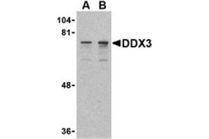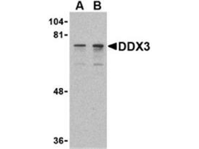 DDX3 contains all of the motifs of the DEAD-box family of RNA helicases, including the Asp-Glu-Ala-Asp sequence that gives the protein family its name and distinguishes it from other RNA helicases (1,2). DDX3 is localized to the X chromosome and has a highly conserved functional homolog (DBY) on the Y chromosome (3). DDX3 is thought to be involved in RNA splicing, RNA transport, and translation initiation (4). It has also been shown to be involved in cell growth control and is deregulated in hepatitis virus-associated hepatocellular carcinoma (5). Recent experiments suppressing DDX3 expression blocked HIV-1 RNA export from the nucleus, suggesting that DDX3 functions as a shuttling protein that transports the HIV-1 protein Rev and its cofactor CRM1 from the nucleus to the cytoplasm (6).Synonyms: ATP-dependent RNA helicase DDX3X, DBX, DDX3, DEAD box X isoform, DEAD box protein 3 X-chromosomal, DEAD3, Embryonic RNA helicase, HLP2, Helicase-like protein 2