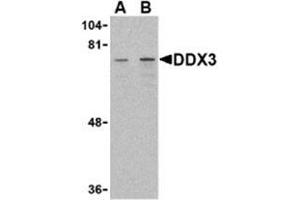 DDX3 contains all of the motifs of the DEAD-box family of RNA helicases, including the Asp-Glu-Ala-Asp sequence that gives the protein family its name and distinguishes it from other RNA helicases (1,2). DDX3 is localized to the X chromosome and has a highly conserved functional homolog (DBY) on the Y chromosome (3). DDX3 is thought to be involved in RNA splicing, RNA transport, and translation initiation (4). It has also been shown to be involved in cell growth control and is deregulated in hepatitis virus-associated hepatocellular carcinoma (5). Recent experiments suppressing DDX3 expression blocked HIV-1 RNA export from the nucleus, suggesting that DDX3 functions as a shuttling protein that transports the HIV-1 protein Rev and its cofactor CRM1 from the nucleus to the cytoplasm (6).Synonyms: ATP-dependent RNA helicase DDX3X, DBX, DDX3, DEAD box X isoform, DEAD box protein 3 X-chromosomal, DEAD3, Embryonic RNA helicase, HLP2, Helicase-like protein 2