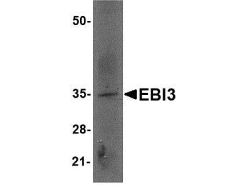 EBI3 antibody was raised against a 16 amino acid peptide from near the center of human EBI3.